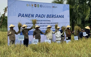 IndonesiaLineNews-Pontianak-Kantor Perwakilan Bank Indonesia (BI) Provinsi Kalbar melalui Gerakan Nasional Pengendalian Inflasi Pangan (GNPIP) terus mendampingi petani untuk menjaga ketersediaan pangan seperti komoditas beras.“Untuk mengendalikan