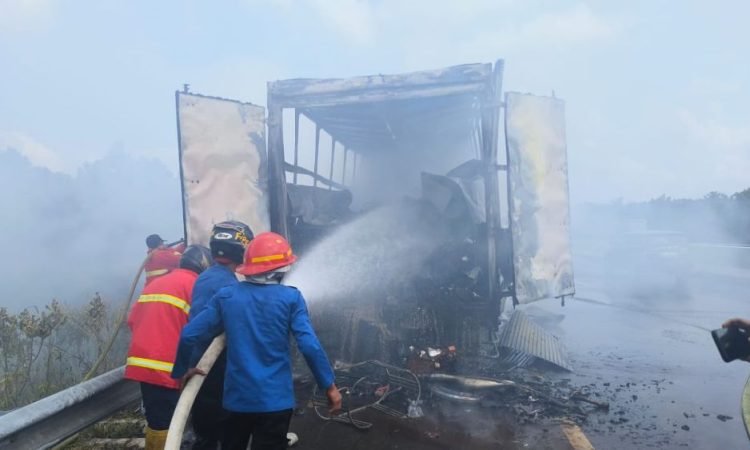 IndonesiaLineNews-Pekanbaru- Mobil box terbakar di Jalan Tol Permai, Kecamatan Pinggir Kabupaten Bengkalis, Riau, pada Sabtu (4/11) sekitar pukul 9.00 WIB. Posisinya mobil box ini terbakar berada di jalur A, KM 57.00, beruntung tidak ada korban jiwa.