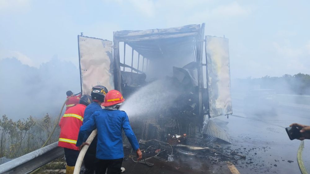 Kasat PJR Ditlantas Polda Riau AKBP Budi Setiawan mengatakan, mobil box yang terbakar berjenis Isuzu Tronton bernomor polisi B 9228 PEV. “Mobil box ini milik Ekspedisi JNE,” ungkap Budi.