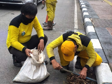 Selain itu, pembersihan tali air juga dilakukan di Jalan Kembangan Raya, Kelurahan Kembangan Utara, Kecamatan Kembangan.