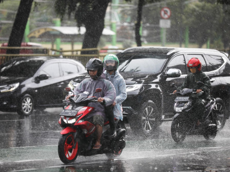 “Waspada potensi hujan sedang hingga lebat yang dapat disertai kilat dan angin kencang yang dapat terjadi di sebagian wilayah Jakarta Barat,Selatan dan Timur pada sore hari,” tulis BMKG dalam peringatan dininya.