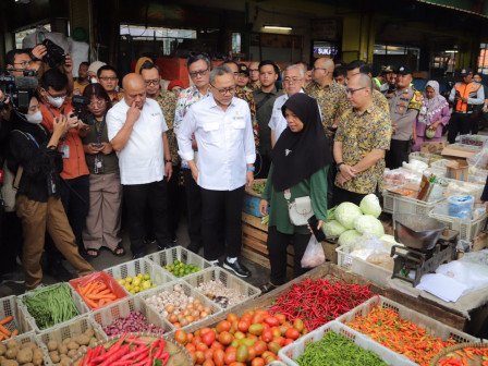 Sementara Mendag Zulkifli Hasan bersyukur harga kebutuhan bahan pokok dari hasil pemantauan di Pasar Palmerah pada awal tahun 2024, relatif stabil.
