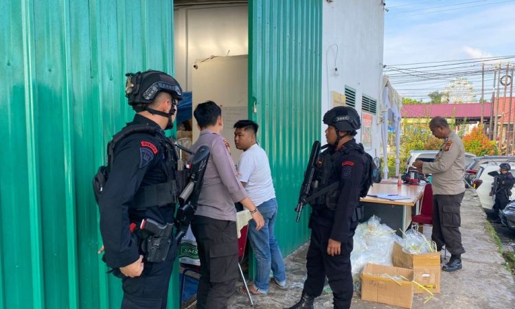IndonesiaLineNews-Pekanbaru- Satuan Brigade Mobil (Brimob) Polda Riau tergabung di Satuan Tugas (Satgas) Tindak Subsatgas Aksi Khusus melaksanakan Patroli Harkamtibmas dialogis di Gudang Logistik KPU, Kamis (18/1).