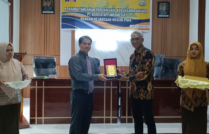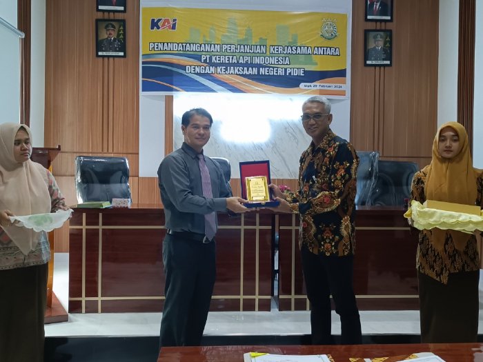 Kemitraan tersebut dituangkan dalam nota perjanjian kerja sama yang ditandatangani oleh pelaksana tugas (Plt) Kepala Kejari Pidie, Azman Tanjung dan PT KAI yang diwakili Kepala Divisi Regional 1.1 Aceh, Mario Edward Setyandi, di Aula Kejari Pidie, Kamis (29/2/2024).