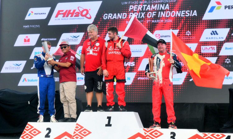 Rusty Wyatt, pebalap dari Tim Sharjah keluar menjadi juara pertama di Grand Prix Danau Toba Indonesia 2024. Sementara itu, Hassanudin berkesempatan menyerahkan piala untuk juara kedua Etik Stark dari tim Victory.
