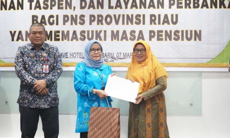 IndonesiaLineNews-Pekanbaru – Terhitung Mulai Tanggal (TMT) 1 Mei 2024, sebanyak 38 Pegawai Negeri Sipil di lingkungan Pemerintah Provinsi (Pemprov) Riau menerima SK Pensiun. SK Pensiun itu diserahkan oleh Pj Gubernur Riau SF Hariyanto yang diwakili oleh Asisten III Sekretariat Daerah Provinsi (Setdaprov) Riau, Elly Wardani, di Fave Hotel Pekanbaru, Kamis (7/3/2024).