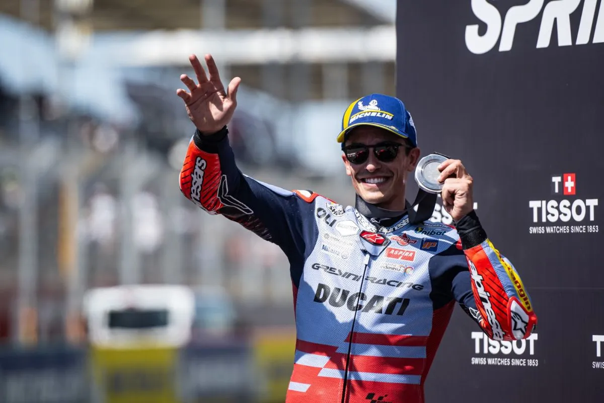 Dengan mengandalkan motor Ducati Desmosedici GP23, Marc Marquez makin nyaman menunjukkan kecepatannya di sprint race dengan berusaha menerobos rombongan pembalap di depan hingga berhasil finis posisi dua pada balapan sepanjang 13 lap sirkuit Le Mans.