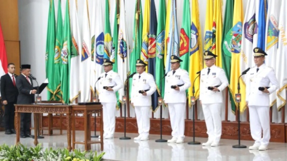 IndonesiaLineNews-Jakarta-Menteri Dalam Negeri Tito Karnavian resmi melantik lima Penjabat (Pj.) gubernur di Gedung Sasana Bhakti Praja (SBP) Kantor Pusat Kementerian Dalam Negeri (Kemendagri), Jakarta, Jumat pagi.
