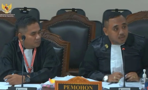 “Kita cek saksi yang diajukan oleh Pemohon itu ada empat orang, Pak Aziz Mahulette, Pak Haipan Tomagola, Ibu Fatimah Sia. Pak Adin tidak ada ya?” tanya Saldi.