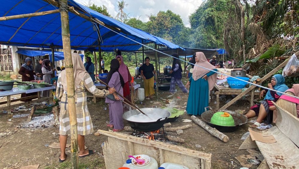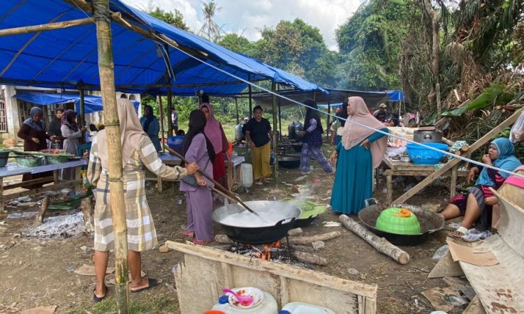 “Kami sembelih dua kerbau dan langsung di masak disekitar bangunan jembatan bersama-sama,” sebutnya.