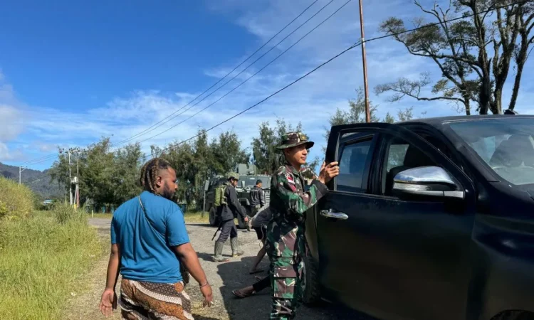 IndonesiaLineNews-Jakarta-Komando operasi TNI Habema bersama masyarakat melakukan pengamanan wilayah dengan memeriksa kendaraan yang keluar dan masuk Kampung Digilimu, Distrik Mbua, Kabupaten Nduga, Provinsi Papua Pegunungan.