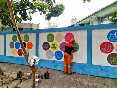 “Pembuatan lukisan mural ini sepanjang 42 meter dengan tinggi dua meter. Tema ini kami pilih agar senada dengan kawasan religi Masjid Luar Batang,” ungkapnya.
