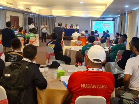 Jovinus Carolus Legawa mengikuti acara pertemuan teknik aquatik bersama Aldwin Rahadian, Chef de Mission (CdM) Kontingen Jakarta untuk Sumut, didampingi Wakil Komandan Kontingen Hengki Silatang.