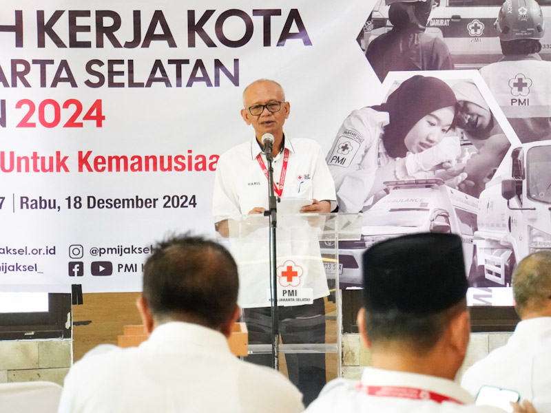 IndonesiaLineNews-Jakarta-Palang Merah Indonesia (PMI) Jakarta Selatan menggelar Musyawarah Kerja Kota (Mukerko) di Aula SMKN 57 Jakarta, Jalan Taman Margasatwa, Kelurahan Jati Padang, Kecamatan Pasar Minggu.