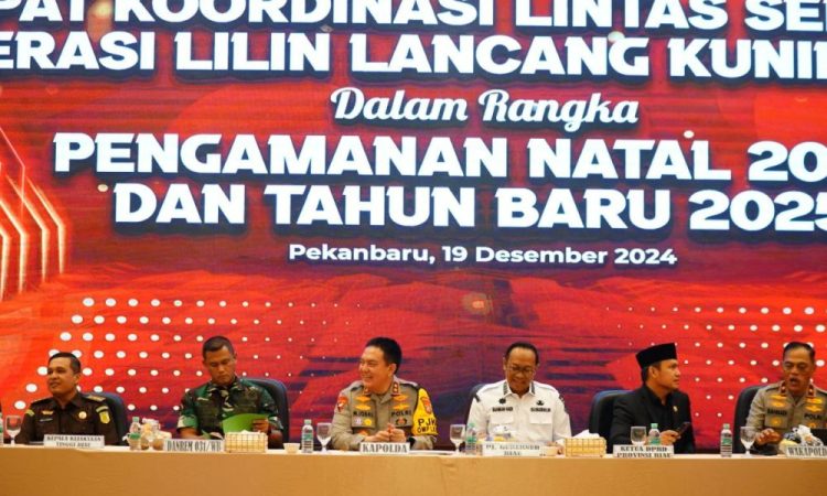 IndonesiaLineNews-Pekanbaru– Menjelang perayaan Natal dan Tahun Baru (Nataru) 2024, Kepolisian Daerah (Polda) Riau bersama jajaran pemerintah daerah dan instansi terkait memantapkan koordinasi untuk memastikan keamanan, ketertiban, dan kelancaran aktivitas masyarakat selama libur akhir tahun. Langkah ini dipertegas melalui rapat koordinasi lintas sektoral Operasi Lilin Lancang Kuning 2024 yang digelar, di Pekanbaru, Kamis (19/12).