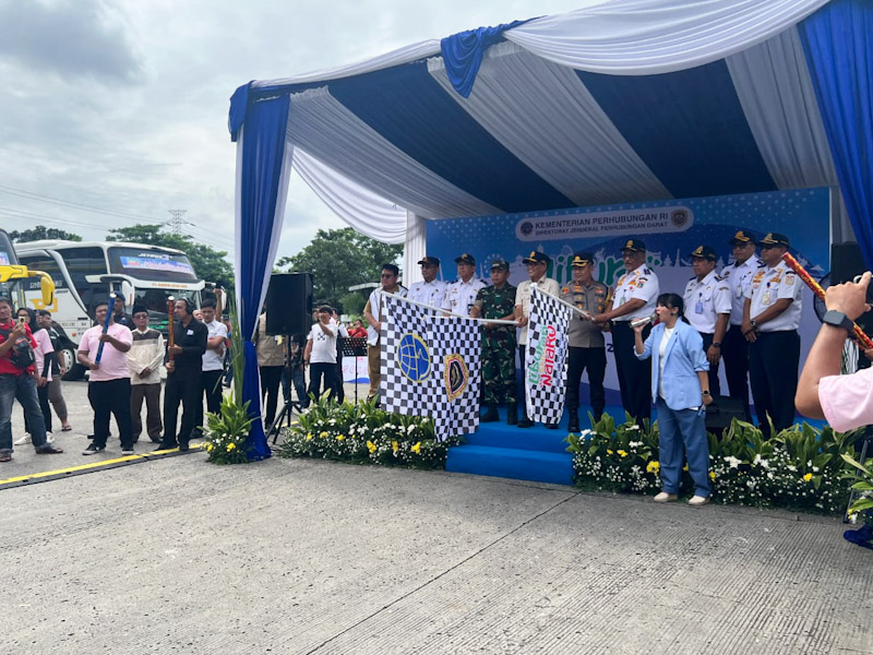 Pelepasan mudik gratis dilakukan Sesdirjen Kementerian Perhubungan RI, Tatan Rustandi didampingi Kepala UPT Terminal Dinas Perhubungan DKI Syamsul Mirwan, Kasudin Kesehatan Jakarta Timur Herwin Meifendy dan Kepala Terminal Bus Kampung Rambutan Yulza Ramadhoni.