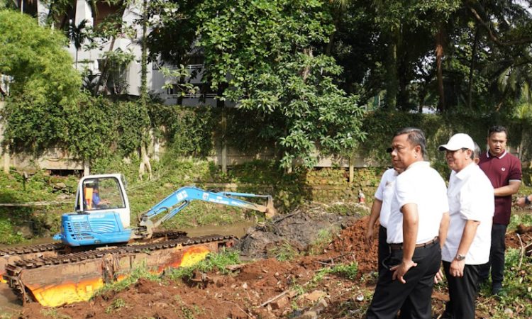 IndonesiaLineNews-Jakarta-Wali Kota Jakarta Selatan, Munjirin melakukan monitoring pengerukan Kali Grogol segmen Jalan Lebak Bulus, Kelurahan Cilandak Barat, Kecamatan Cilandak.