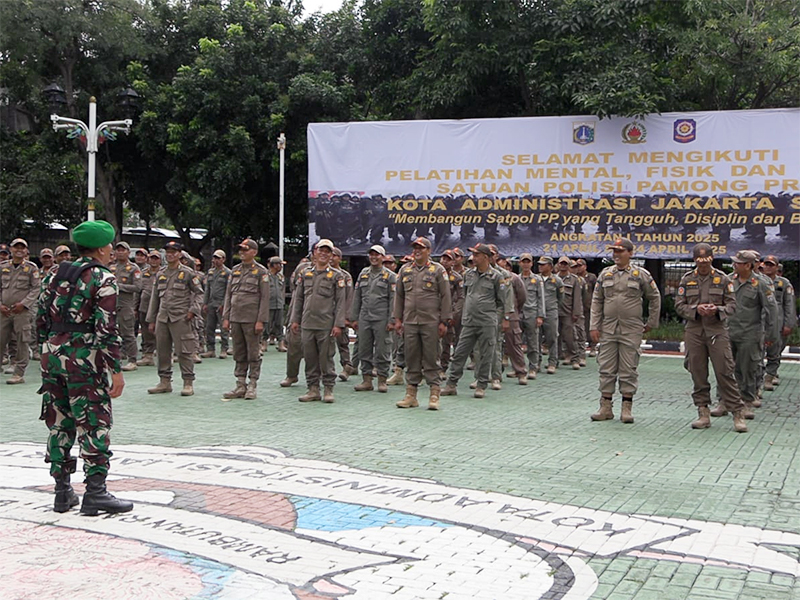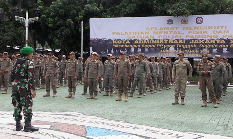 IndonesiaLineNews-Jakarta-Ratusan personel Satuan Polisi Pamong Praja (Satpol PP) Jakarta Selatan diberikan pelatihan mental, fisik dan kedisiplinan di area Kantor Wali Kota setempat.