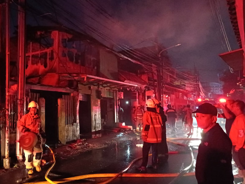 IndonesiaLineNews-Jakarta-Sebanyak 75 personel Suku Dinas Penanggulangan Kebakaran dan Penyelamatan (Gulkarmat) Jakarta Timur berhasil memadamkan api yang menghanguskan dua rumah dan dua kios di Jalan SMAN 14, RT 06/04, Kelurahan Cililitan, Kecamatan Kramat Jati.
