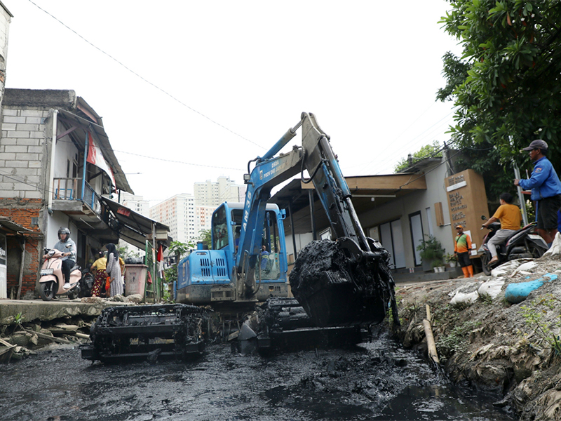 “Hingga saat ini, total lumpur yang telah berhasil dikeruk sebanyak kurang lebih 4.500 meter kubik. Lumpur yang telah dikeruk dibawa ke pembuangan khusus di dumping site Ancol,” ucapnya.