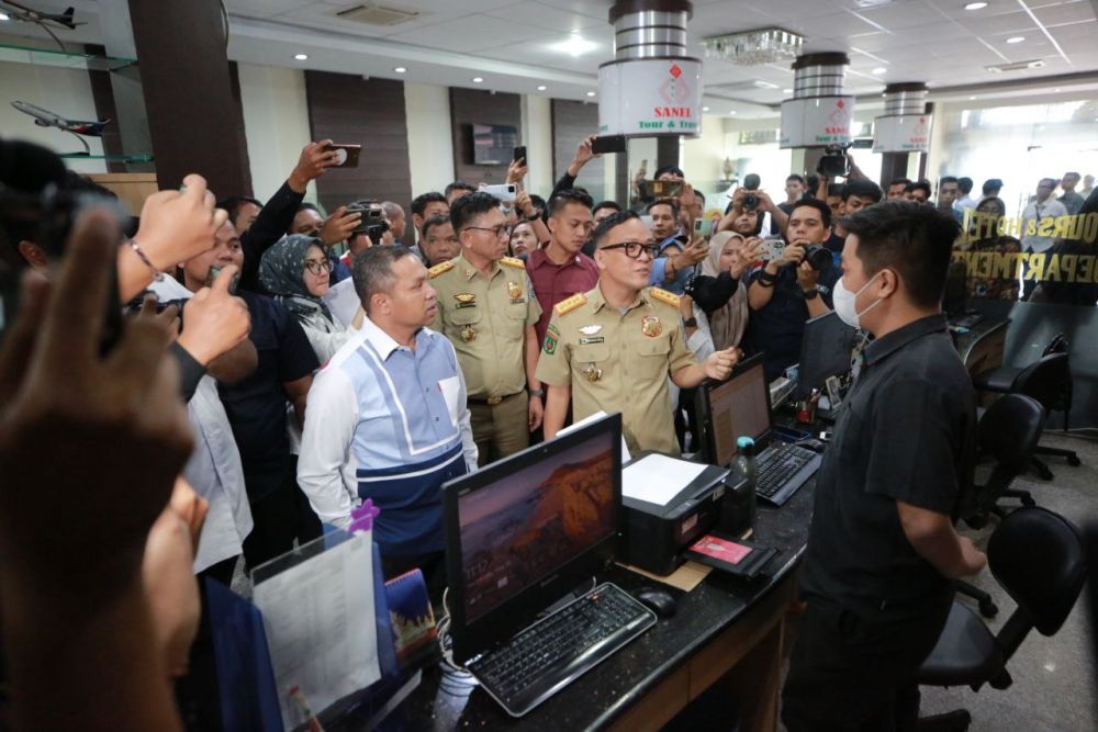 IndonesiaLineNews-Pekanbaru– Gubernur Riau (Gubri) Abdul Wahid, melakukan inspeksi mendadak (sidak) ke salah satu biro perjalanan wisata di Kota Pekanbaru. Pihak perusahaan ini diduga menahan ijazah karyawannya secara tidak sah.