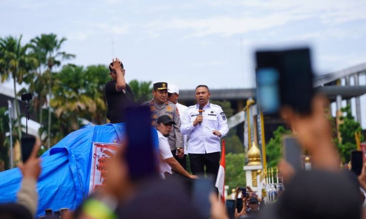 IndonesiaLineNews-Pekanbaru – Situasi tegang aksi unjuk rasa terkait relokasi di kawasan Taman Nasional Tesso Nilo (TNTN) berhasil diredakan setelah Gubernur Riau Abdul Wahid bersama Kapolda Riau Irjen Herry Heryawan, serta Bupati Pelalawan dan Bupati Indragiri Hulu turun langsung menemui massa. Aksi besar-besaran yang melibatkan gabungan Aliansi Mahasiswa dan Masyarakat Pelalawan (AMMP) ini digelar di kawasan Bundaran Zapin hingga depan Kantor Gubernur Riau pada Rabu, 18 Juni 2025.