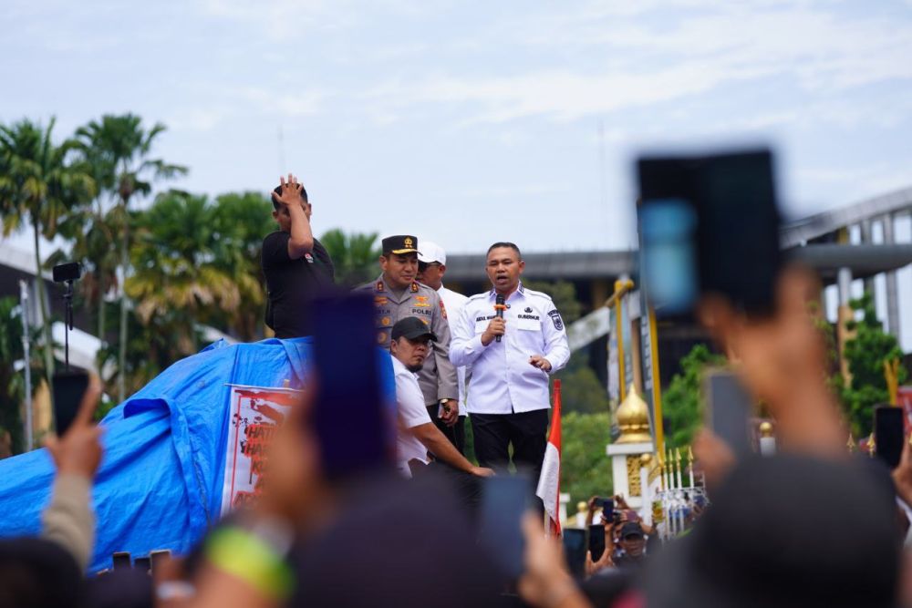 Di hadapan ribuan massa aksi, Gubernur Riau Abdul Wahid memberikan komitmen tegas untuk memperjuangkan nasib warga yang terdampak relokasi. Ia memastikan bahwa suara masyarakat akan disampaikan langsung kepada pembuat kebijakan di tingkat pusat.