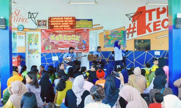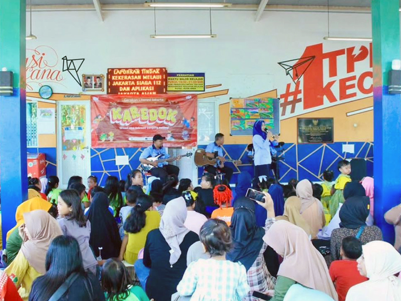 IndonesiaLineNews-Jakarta-Suku Dinas Perpustakaan dan Kearsipan (Sudin Pusip) Jakarta Utara mengadakan kegiatan Kreasi Aksi Rekreasi Dongeng Keliling (Karedok) di RPTRA Triputra Persada Hijau, Asrama Lingkungan Hidup, Kelurahan Semper Barat, Kecamatan Cilincing. Kegiatan ini disambut antusias ratusan anak-anak setempat.