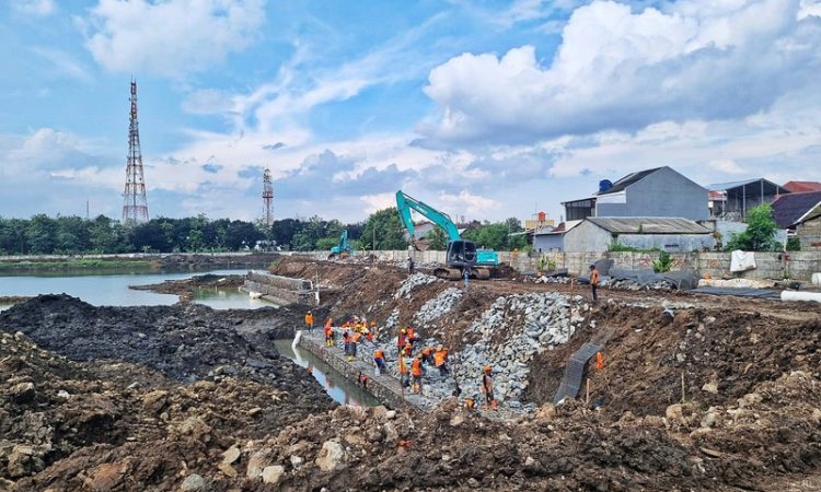 “Saat ini kita sedang lakukan penggalian lahan atau pengerukan sekaligus pemasangan turap menggunakan bronjong batu kali yang mengelilingi area waduk,” bebernya.