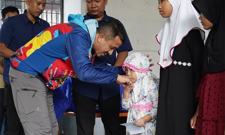IndonesiaLineNews-Jakarta-Wali Kota Jakarta Selatan, Muhammad Anwar memberikan santunan kepada 40 yatim piatu dan dhuafa di Balai Warga, Jalan Bintaro Taman Barat, RW 11, Kelurahan Bintaro, Kecamatan Pesanggrahan.
