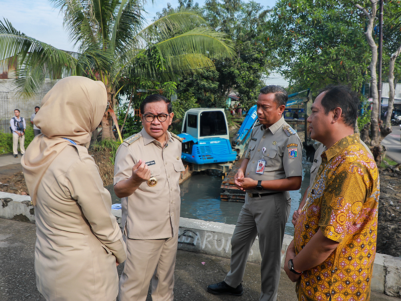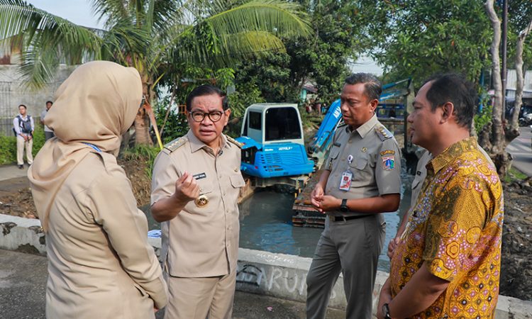 IndonesiaLineNews-Jakarta-Gubernur DKI Jakarta, Pramono Anung meninjau pengerukan Kali Irigasi Bekasi Tengah, Cakung, Jakarta Timur, Senin (7/7). Peninjauan tersebut dilakukan untuk memastikan penanganan banjir dan pengairan di wilayah tersebut berjalan optimal.