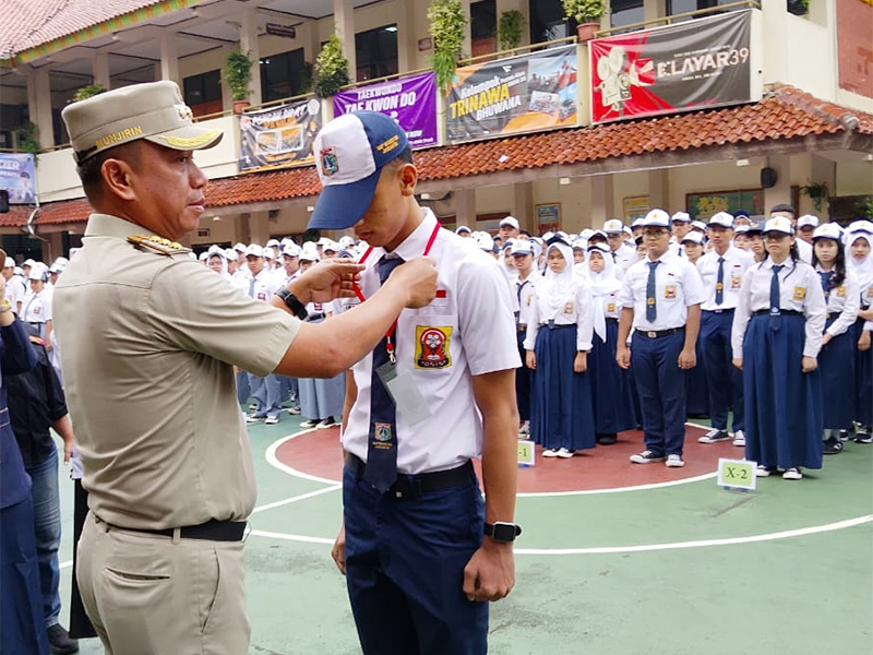 IndonesiaLineNews-Jakarta-Wali Kota Jakarta Timur, Munjirin memberikan motivasi kepada para pelajar dalam memasuki tahun ajaran baru 2025 di SMA Negeri 39, Kompleks Kopassus Cijantung, Kecamatan Pasar Rebo.