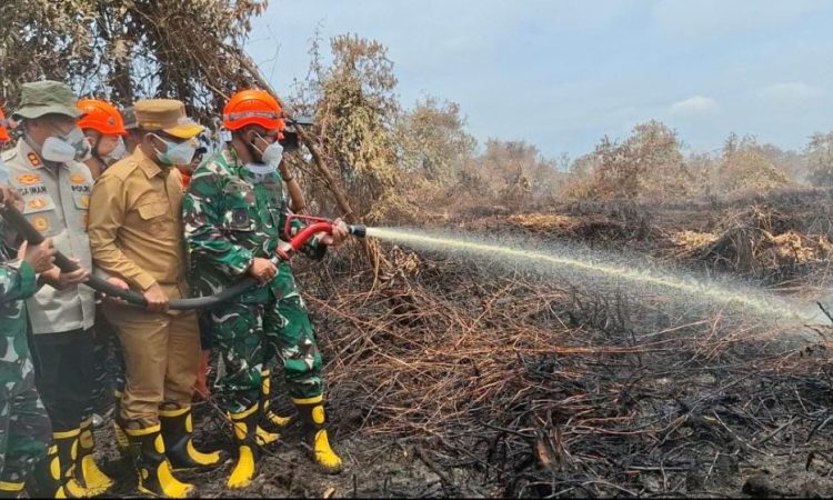 IndonesiaLineNews-Rokan Hilir – Pangdam I Bukit Barisan Mayor Jenderal TNI Rio Firdianto meninjau lokasi kebakaran hutan dan lahan di Rokan Hilir, Riau. Bahkan jenderal bintang dua itu turun langsung memadamkan.