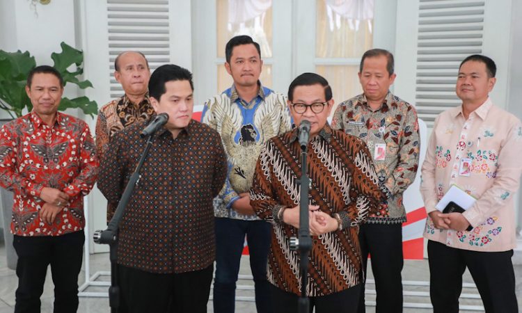 IndonesiaLineNews-Jakarta-Gubernur DKI Jakarta Pramono Anung menerima Ketua Umum Persatuan Sepak Bola Seluruh Indonesia (PSSI), Erick Thohir di Balai Kota DKI Jakarta, Kamis (14/8).