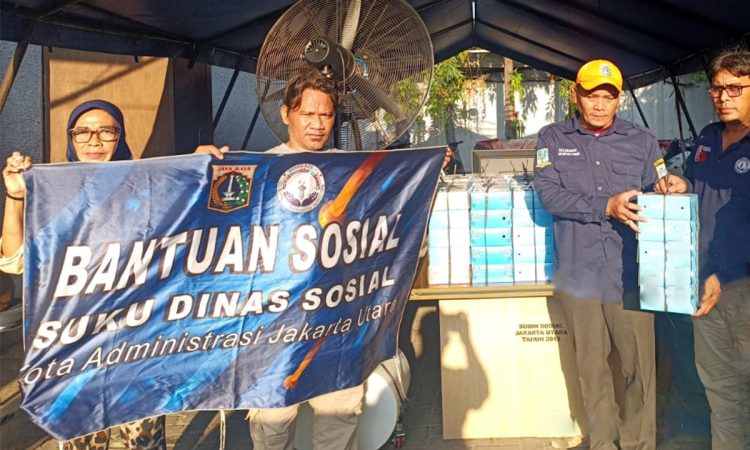 IndonesiaLineNews-Jakarta-Suku Dinas Sosial (Sudinsos) bersama Badan Penanggulangan Bencana Daerah (BPBD) dan PMI Jakarta Utara bergerak cepat mendistribusikan bantuan bagi penyintas kebakaran di Jalan Cakung Drainase, Kampung Sawah, RT 05/11, Kelurahan Semper Timur, Kecamatan Cilincing.