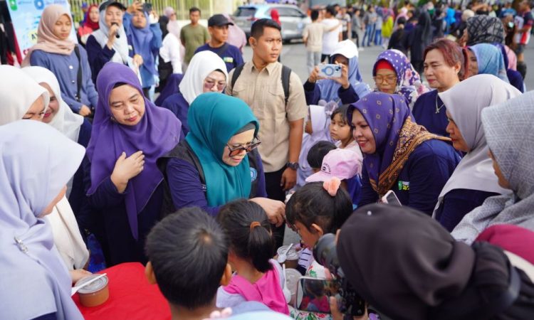 IndonesiaLineNews-Pekanbaru-Memperingati Hari Ikan Nasional (Harkannas) 21 November, Pemerintah Provinsi Riau melalui TP PKK dan Dinas Kelautan dan Perikanan Provinsi Riau menggelar senam bersama serta sosialisasi gemar makan ikan di kawasan Car Free Day Jalan Sudirman, Minggu pagi (23/11/2025).