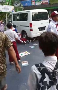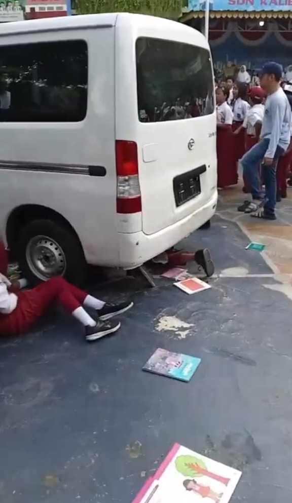 Tampak di video tersebut, ada beberapa murid SD yang masih tersangkut di kolong mobil. Para guru berupaya menyelamatkan mereka. Para murid tampak histeris dan ada yang terdengar menangis.