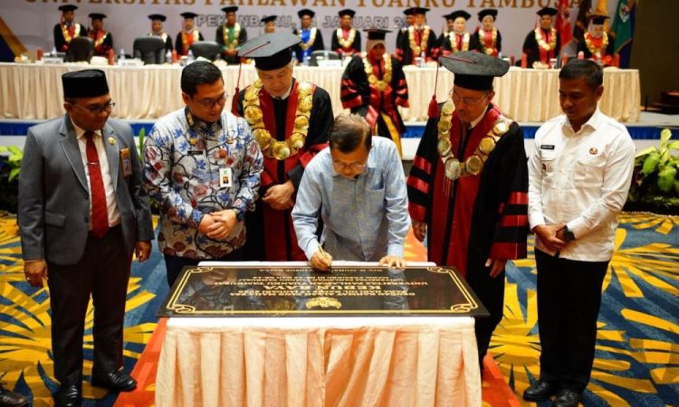 “Bismillahirrahmanirrahim. Kebun Raya Universitas Pahlawan Tuanku Tambusai saya resmikan,” ujar Jusuf Kalla bersamaan dengan kegiatan wisuda 536 mahasiswa Universitas Pahlawan Tuanku Tambusai di SKA CoEx Pekanbaru, Rabu (14/1/26).