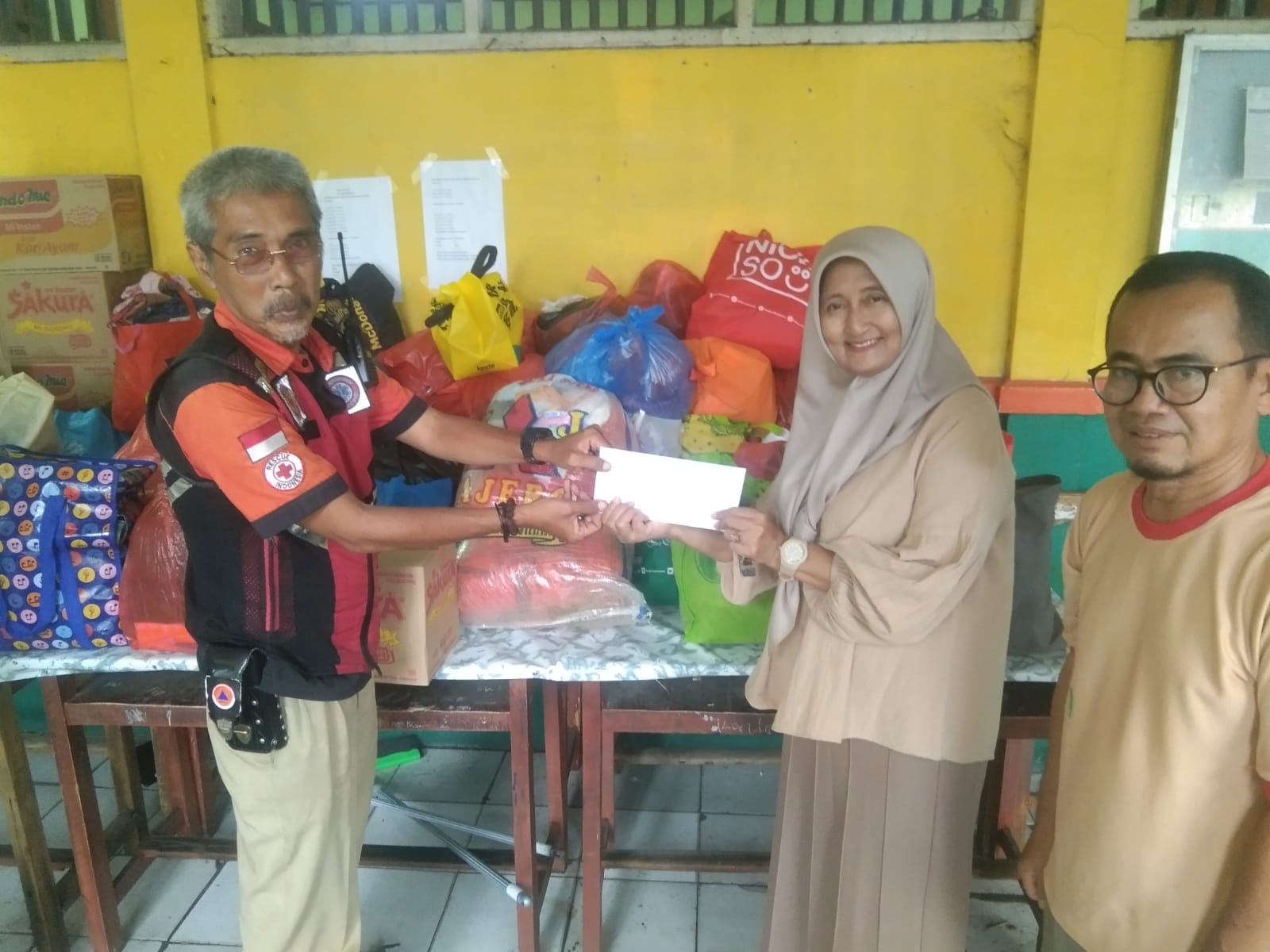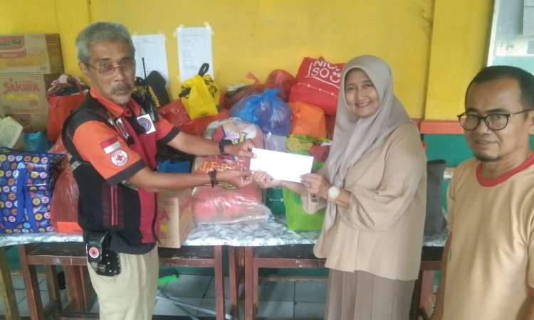 Suparjo Spd, MM mewakili Kepala Sekolah SDN Mekarsari 04 Tambun Selatan bersama Personil Rescue Emergency Respon Ki Rachmat Menyerahkan Bantuan Kemanusiaan Berupa Sembako Dan Pakaian Layak Pakai Untuk Warga Muaragembong secara Langsung Dilokasi Terdampak Banjir.