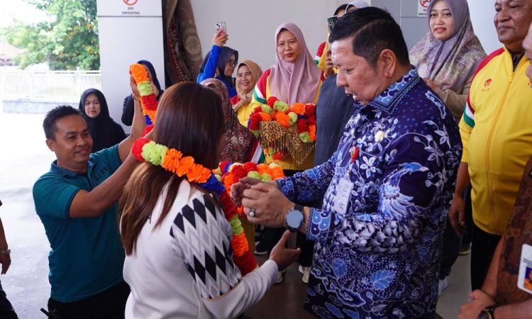 IndonesiaLineNews-Pekanbaru – Asisten I Sekretariat Daerah Provinsi Riau, Zulkifli Syukur sambut kepulangan atlet asal Riau yang berlaga pada ASEAN Para Games ke-13 Tahun 2025 di Bandara VVIP Lancang Kuning, Kamis (29/1/2025). Kedatangan para atlet disambut dengan pengalungan bunga sebagai ucapan selamat datang.