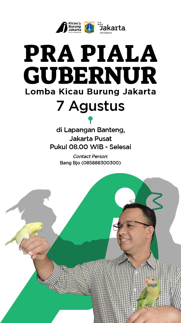 Teropongtimeindonesia-Jakarta -Pemprov DKI Jakarta berkolaborasi dengan para komunitas pecinta burung akan menggelar Lomba Kicau Burung Pra Piala Gubernur Jakarta. Perlombaan ini untuk memeriahkan Jakarta Hajatan ke-495 tahun dan hari kemerdekaan Republik Indonesia ke-77 tahun.
