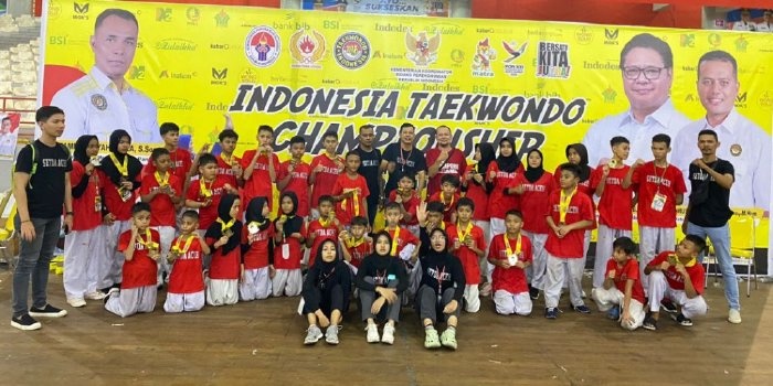 IndonesiaLineNews-Medan–Tim Dojang Taekwondo Setda Aceh meraih juara dengan status juara umum tiga Katagori Festival pada ajang Indonesia Taekwondo Championship kategori festival, yang digelar Menteri Koordinator Perekonomian RI di Kota Medan. Ajang nasional itu berlangsung selama empat hari, 1 sampai 4 Juni 2023. “Dari 34 Atlet yang kita kirim bertanding, Alhamdulillah semuanya berhasil membawa pulang medali,”kata pelatih Tim Dojang Taekwondo Setda Aceh, Bustami, di Kota Medan, Minggu, (4/6/2023).