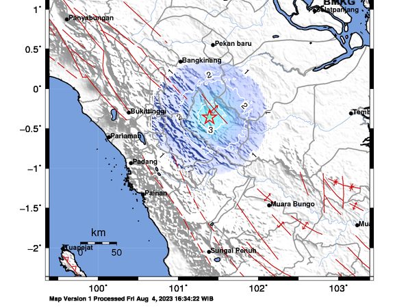 “Episenter gempa bumi berada di darat pada jarak 17 km arah Barat Laut Kuantansingingi, Riau, dengan kedalaman 10 km. Jenis gempa bumi ini dangkal dan akibat adanya aktivitas sesar lokal,” kata Kepala Stasiun Geofisika Padang Panjang, Dr Suaidi Ahadi dikutip Jumat (4/8/2023) sore.