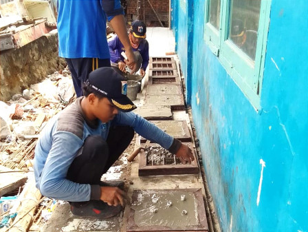 Ketua RW 03 Pulau Panggang, Jarwanto, mengapresiasi petugas SDA yang telah membenahi bak kontrol yang sudah terlihat kusam dan rusak.